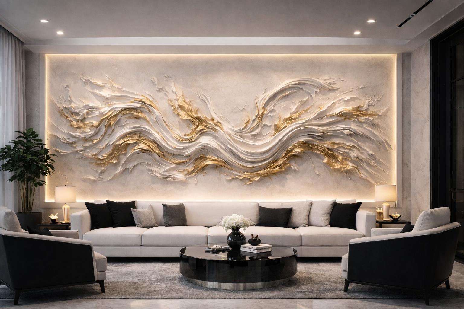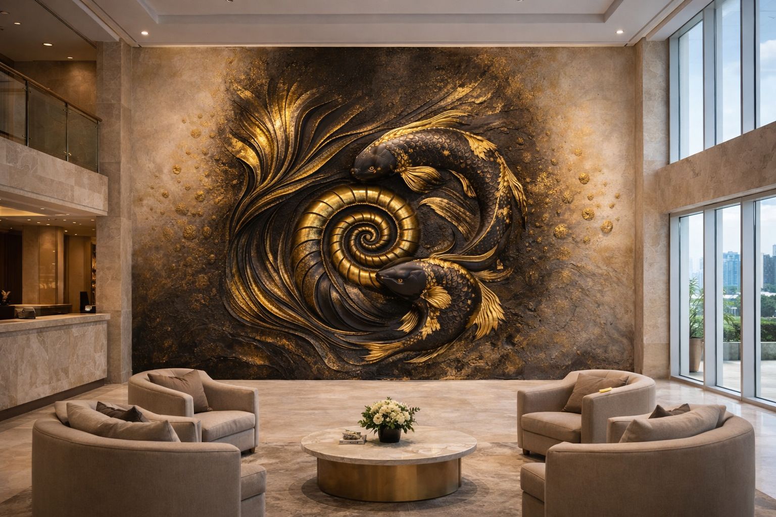 Sculptural Installations presents a series of large-scale wall concepts designed for permanent placement in high-value interiors.