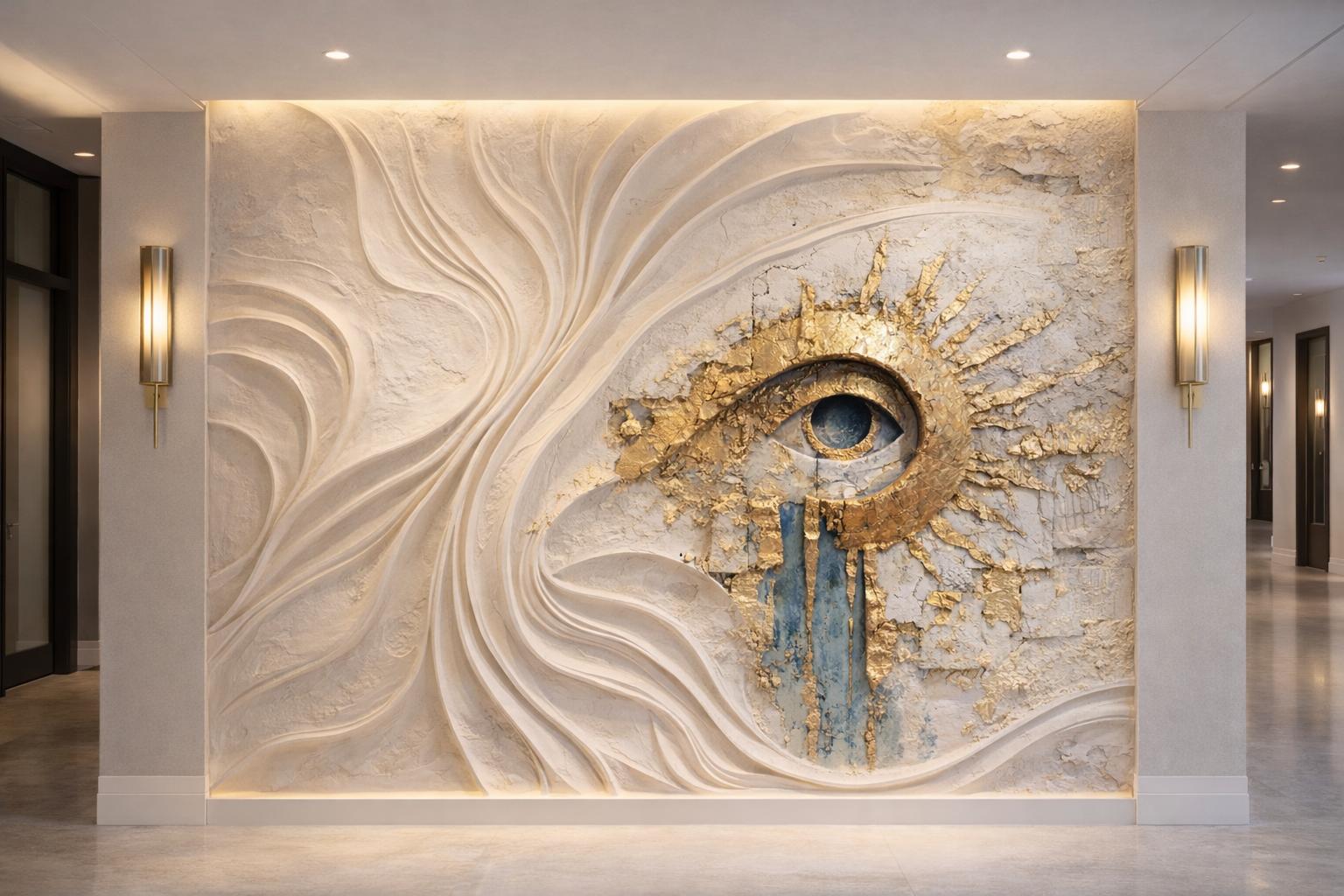 The works shown here are conceptual studies. They demonstrate scale, texture language, and compositional direction rather than finished commissions. Each concept serves as a starting point, adaptable in size, material, finish, and narrative to suit the architectural goals of a specific project.